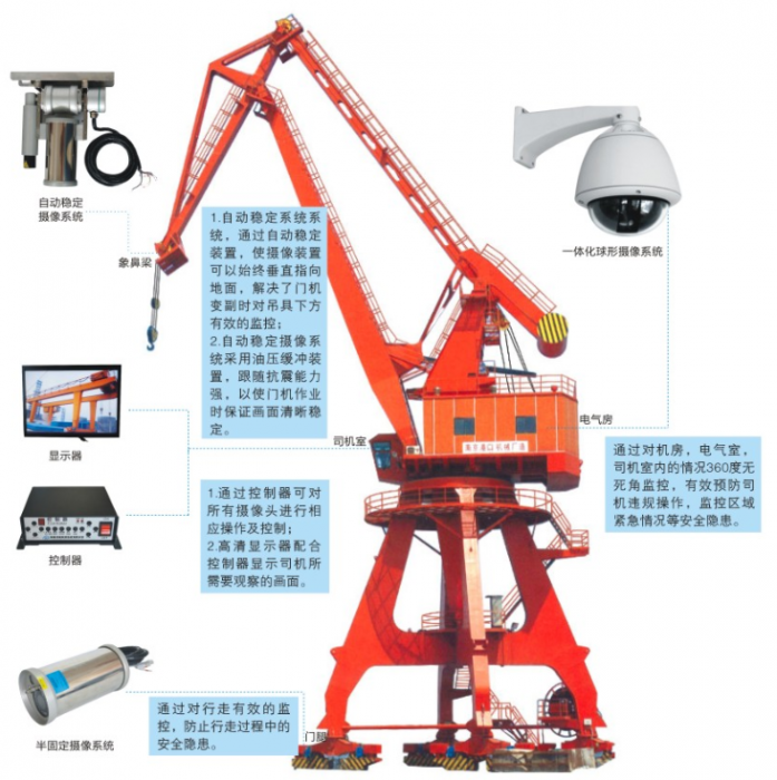 1、象鼻梁:监控船舱、吊具下方货物及人员情况;